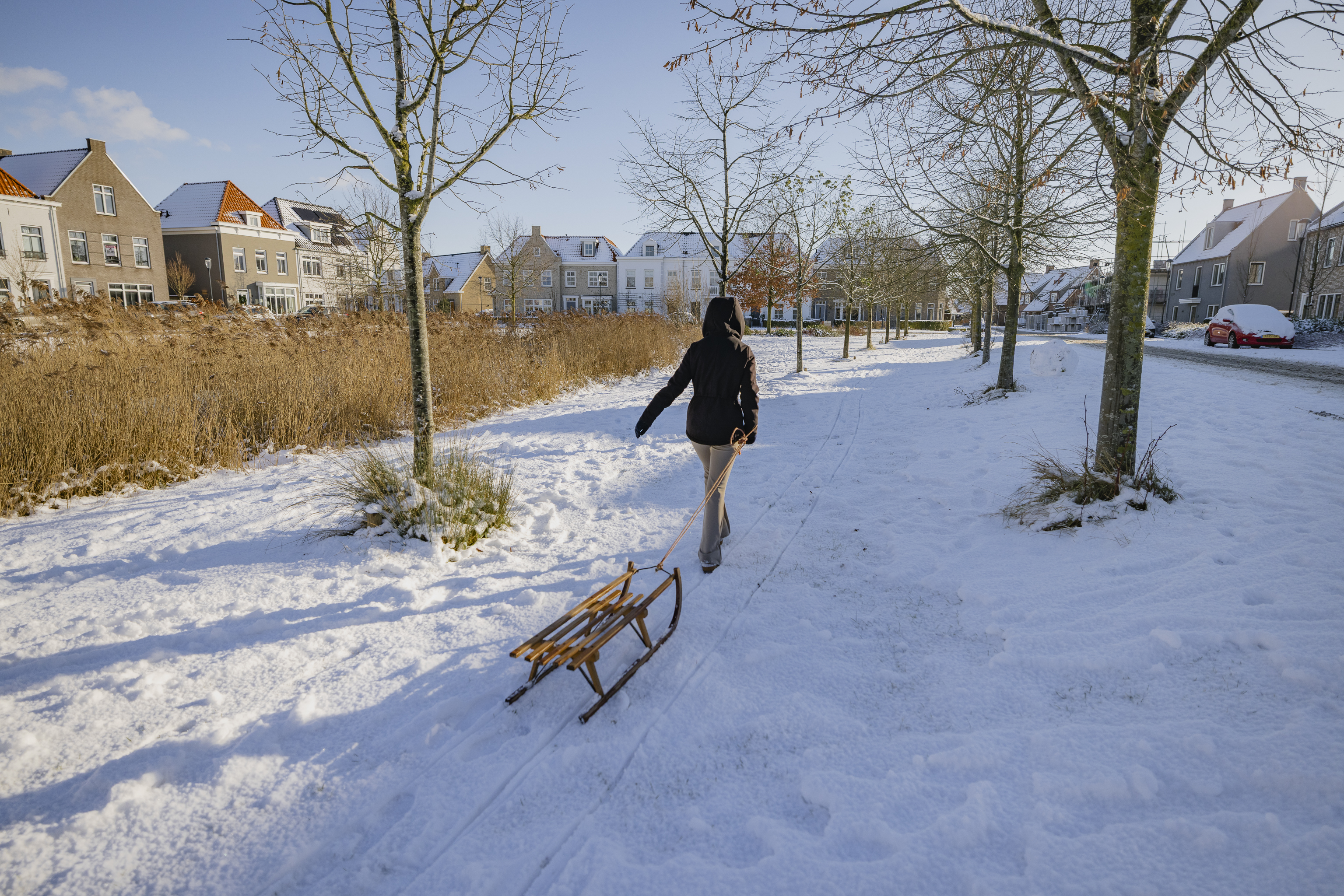 In het park lopen bewoners met hun honden. Er wordt gegroet, even stilgestaan voor een praatje, terwijl ademwolkjes zichtbaar worden in de koude lucht. Op het Vedelplein klinkt gelach. Tieners gooien sneeuwballen, een slee wordt langs de herenhuizen voortgetrokken. De bewoners van de wijk zijn buiten, ook nu. Juist nu.